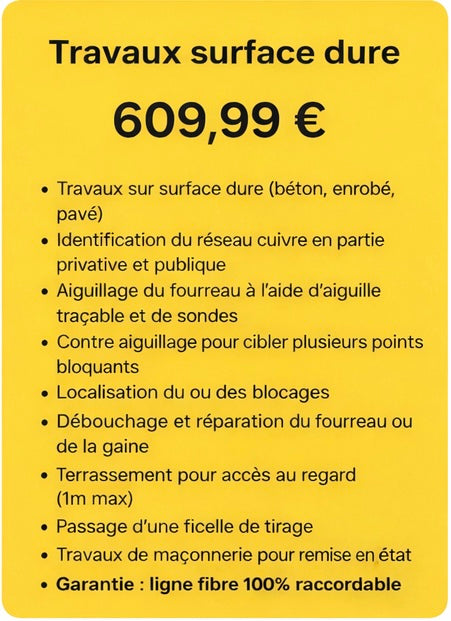 NasPro intervient sur tous les obstacles techniques pouvant empêcher le passage de votre fibre : fourreau obstrué ou endommagé, regard télécom introuvable, ou gaine impraticable.